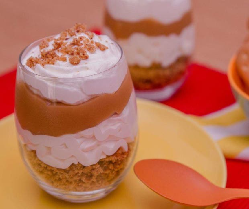 Monte as camadas intercalando paçoca, chantilly e doce de leite.