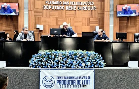 A Frente Parlamentar de Apoio ao Produtor de Leite realizou reunião nesta segunda-feira (4) com grande presença de produtores do estado e representantes de organização como Associação dos Criadores de Mato Grosso (Acrimat) e Associação dos Produtores de Leite da Região Oeste de Mato Grosso (Aplo-MT). A principal reinvindicação feita é sobre o preço pago aos produtores pelo leite por indústrias.
