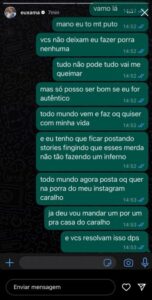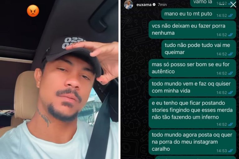 “Todo mundo vem e faz o que quiser com a minha vida e eu tenho que ficar postando stories fingindo que esses mer*** não tão fazendo um inferno. Todo mundo agora posta o que quer na p**ra do meu Instagram, cara***”, continuou.