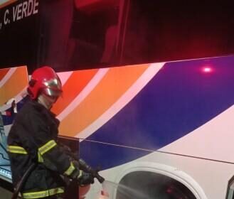 Corpo de Bombeiro é acionado para conter incêndio em ônibus