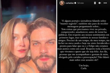 Um dia após a publicação da notícia de que Carla Diaz e Felipe Becari não estariam…