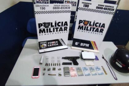 PM prende três pessoas e apreende arma de fogo e porções de drogas em Cáceres