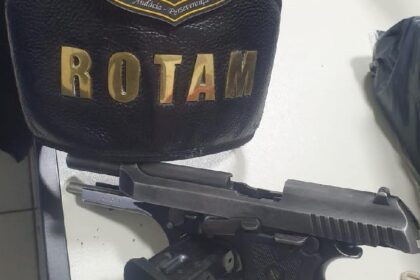 Rotam prende dupla suspeita de homicídio e apreende arma de fogo