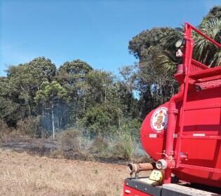Corpo de Bombeiros combate incêndio em vegetação dentro de condomínio