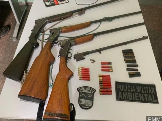 Questionados sobre os materiais, um dos homens disse ser dono das armas, mas não apresentou documentação que comprovasse o porte das espingardas. Ainda com o trio, a PM apreendeu redes, lanternas e materiais comumente utilizados para caça de animais.