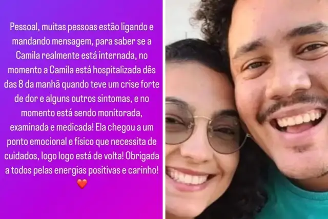 “A Camila está hospitalizada desde das 8h da manhã, quando teve uma crise forte de dor e alguns outros sintomas e, no momento, está sendo monitorada, examinada e medicada”, disse.