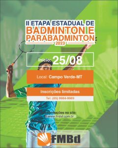 A Federação Mato-Grossense de Badminton (FMBd) está se preparando para realizar a tão aguardada II Etapa do Campeonato Estadual de Badminton, que acontecerá na cidade de Campo Verde – MT, entre os dias 25 e 27 de agosto de 2023.
