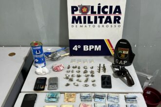PM prende três pessoas e apreende arma de fogo e porções de drogas em Cáceres