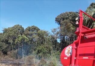 Corpo de Bombeiros combate incêndio em vegetação dentro de condomínio