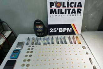 Policiais militares do 25º Batalhão prenderam em flagrante, nesta segunda-feira (26), uma mulher, de 50 anos, por tráfico de drogas,…