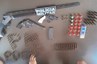 Com o suspeito, a PM apreendeu três armas e 400 munições Policiais militares de Poconé prenderam um homem de 39…