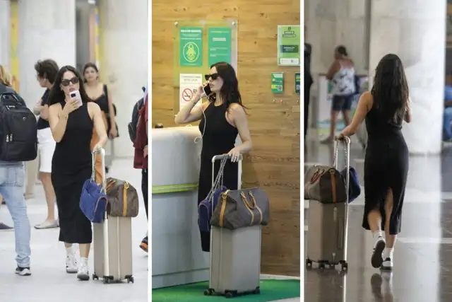 Usando um vestido preto comprido e coladinho ao corpo, a atriz carregava suas malas e uma bolsa da marca Louis Vuitton chamou a atenção. O mimo chega a ser avaliado em R$ 7 mil.