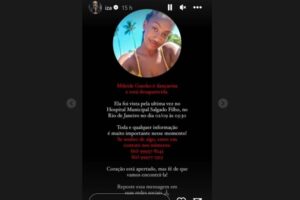 Em suas redes sociais, IZA fez um pedido, no domingo, enquanto a moça ainda estava desaparecida.