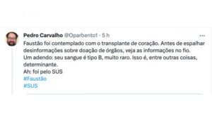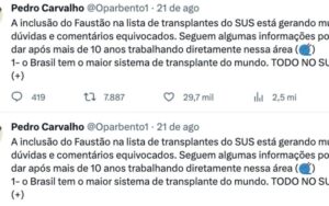 Ele ainda fez questão de compartilhar um link que leva o usuário à vários posts nos qual Pedro Carvalho, um médico graduado pela UFMG, explica o funcionamento do processo de doação de órgãos no Brasil.