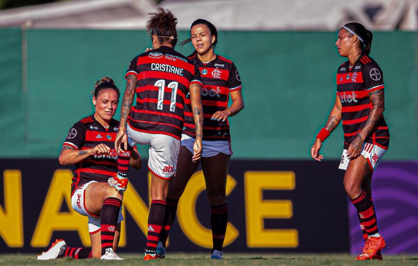 Atuando em casa, pela 7ª rodada do Brasileirão Feminino, o Flamengo teve uma ótima atuação e aplicou uma goleada de 7 a 0 sobre o Santos, na tarde desta segunda-feira (29), no estádio Luso Brasileiro. Cristiane (2), Camila Martins (contra), Glaucia, Naná, Laysa e Isadora balançaram as redes para as Meninas da Gávea. Com o triunfo, o Mais Querido subiu para a 10ª colocação com oito pontos.