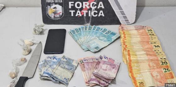 Já com os criminosos e dentro do carro, os militares encontraram uma faca, seis porções de pasta base de cocaína e a quantia de R$ 2.483,00 em dinheiro. Questionados sobre o material, o condutor do automóvel disse que os produtos eram seus, mas não soube explicar a procedência das drogas e valores.