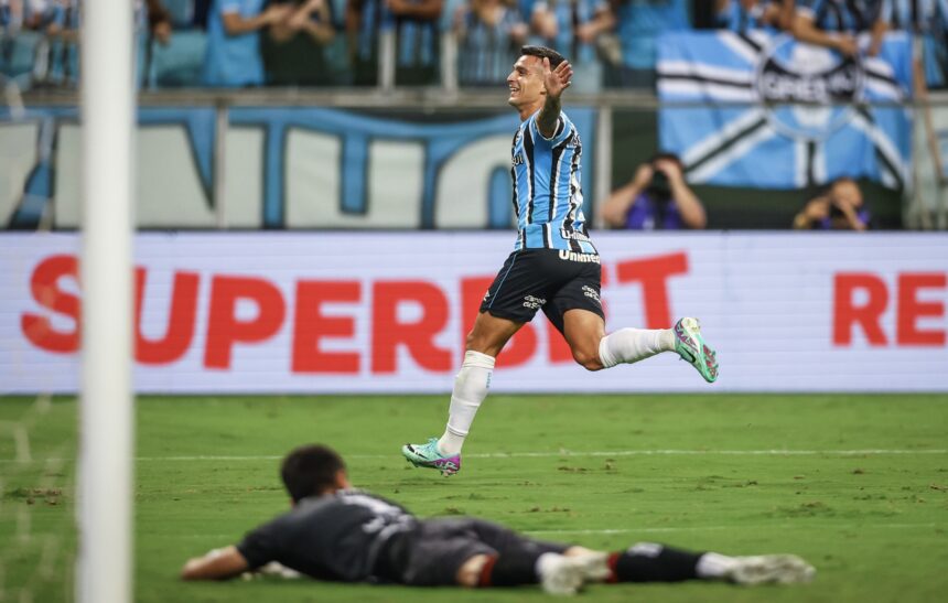 Muita pressão, chegadas, posse de bola e o gol do Grêmio era questão de tempo. Se não estava funcionando o sistema para entrar na área adversária, a solução foi arriscar de fora. Aos 45 minutos, Franco Cristaldo recebeu de Mayk, girou na marcação e colocou a bola no ângulo, marcando um golaço e abrindo merecidamente o marcador para o Tricolor. 1 a 0 na reta final da etapa inicial.