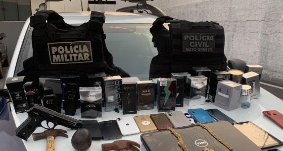 Com os suspeitos foi apreendida parte dos produtos furtados, como vários frascos de perfumes, celulares, notebook e ainda ferramentas usadas para arrombar os locais alvos das ações criminosas. Com os suspeitos também foram encontradas roupas usadas durante os furtos, como casacos com capuzes.