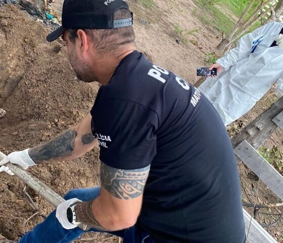 Após matar a vítima, o suspeito cavou uma cova, onde ocultou o corpo da vítima, cobrindo com terra e queimando diversos objetos com a finalidade de esconder os vestígios do crime.