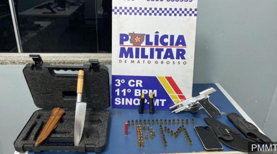 A Polícia Militar prendeu em flagrante um homem de 31 anos pelos crimes de violência doméstica e ameaça, na noite deste domingo (17.03), em Sinop. Na ação, a PM localizou e apreendeu uma pistola e 58 munições da arma de fogo.