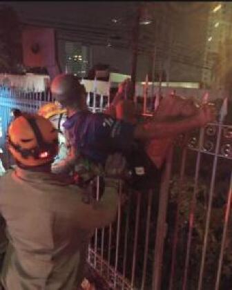 Um morador de rua de 26 anos preciso ser sorriso na madrugada desta sexta-feira (22), após tentar pular o portão de um desinfeta no bairro Goiabeiras, em Cuiabá, e ficar preso entre as grades.