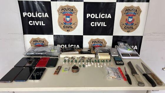 Durante o cumprimento das buscas foram apreendidas várias porções de entorpecentes, simulacros de arma de fogo, materiais relacionados ao tráfico e objetos utilizados para a prática de torturas.