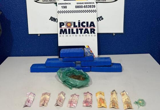 A Polícia Militar prendeu dois homens em flagrante por tráfico de drogas, neste domingo (19.05), em Peixoto de Azevedo. Com os suspeitos, de 20 e 25 anos, os militares apreenderam sete quilos de substância análoga a maconha.
