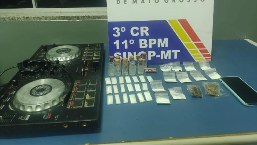 Policiais militares do 11º Batalhão prenderam um homem de 18 anos pelos crimes de tráfico de drogas e perturbação do sossego alheio na madrugada desta quarta-feira (08.02), em Sinop. Com o suspeito, que se apresentou como gerente de uma tabacaria, a PM apreendeu quantidades de diversos tipos de entorpecentes.