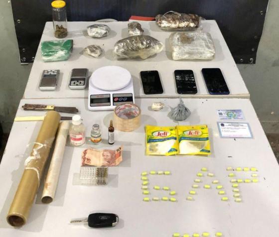 Nas buscas pela residência, a equipe do GAP encontrou mais tabletes e porções grandes de maconha, 46 comprimidos de ecstasy, balança de precisão e substâncias utilizadas para a fabricação de entorpecentes. Também no local, munições de calibre .22 foram apreendidas.