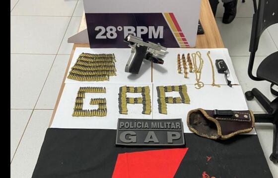 PM prende suspeito por porte ilegal e apreende arma de fogo e mais de 300 munições