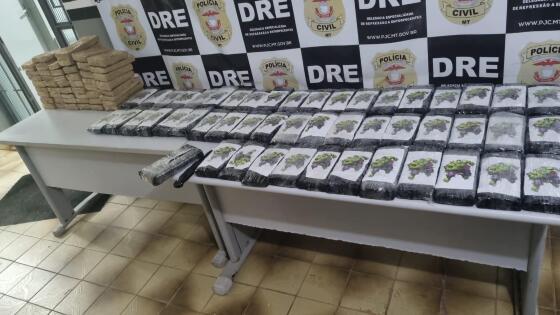 No interior do veículo, foi possível identificar cinco bolsas com diversas peças inteiras de pasta base de cocaína e de cloridrato de cocaína, totalizando 100 tabletes da droga. O material ilícito foi apreendido e o suspeito conduzido à delegacia, onde após ser interrogado pelo delegado André Rigonato, foi autuado em flagrante por tráfico de drogas majorado.