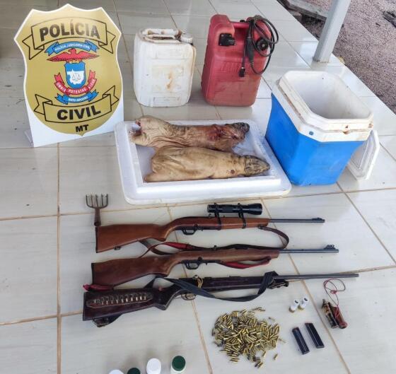 Os envolvidos foram conduzidos para Delegacia de Jauru, interrogados e autuados em flagrante por porte ilegal de arma de fogo, associação criminosa e crime ambiental de matar, perseguir, caçar, apanhar, utilizar espécimes da fauna silvestre.
