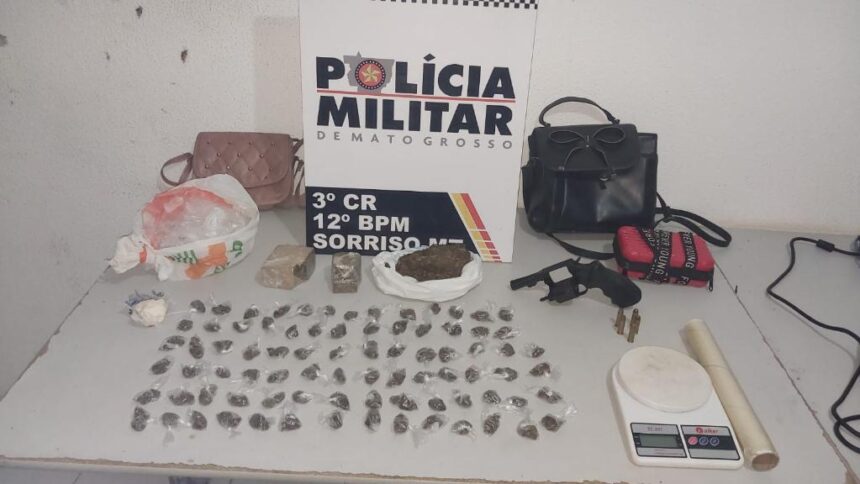 Policiais militares do 12º Batalhão apreenderam, neste domingo (16.04), 82 porções de maconha, uma arma de fogo tipo revólver calibre 38, munições e 30 cestas básicas, no residencial Mário Raiter, no município de Sorriso (397 km de Cuiabá).