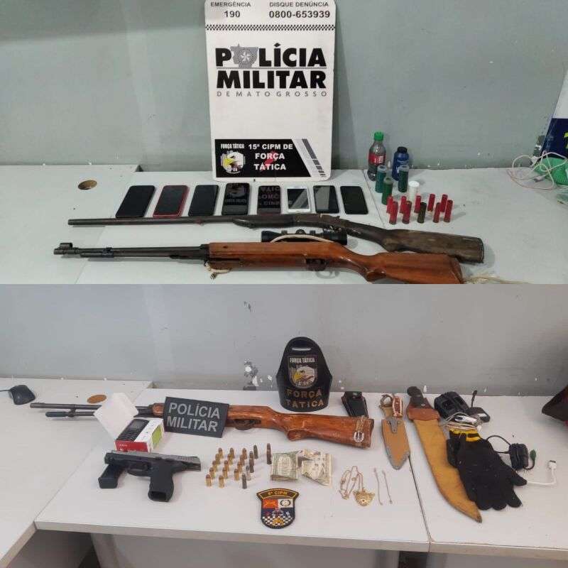 Ainda em depoimento, um dos criminosos também disse que teria deixado os objetos utilizados no crime, em sua residência, no bairro Parque Paiaguás. No endereço indicado, os policiais encontraram mais duas espingardas e munições para as armas de fogo. Em seguida, os suspeitos receberam voz de prisão.