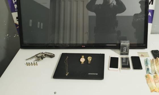 Por volta de 22h, os militares do 5º Batalhão foram acionados por testemunhas, as quais relataram que três homens teriam invadido uma residência, na Rua Goiás, e que haviam feito uma família de refém. Após a denúncia, os agentes se deslocaram até a casa, encontraram o portão da residência aberto e uma TV nas proximidades.