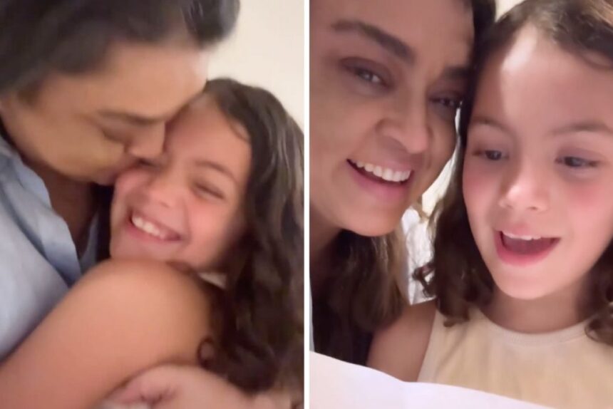 Ela mostrou o momento em que foi recebida em casa pelas cachorrinhas, que pularam de felicidade, pela neta e por muitos presentes.