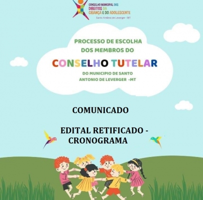 A Presidente da Comissão Organizadora do PROCESSO DE ESCOLHA EM DATA UNIFICADA PARA MEMBROS DO CONSELHO TUTELAR DE SANTO ANTONIO DE LEVERGER‐MT, no uso de suas atribuições legais, torna pública a retificação do Anexo.