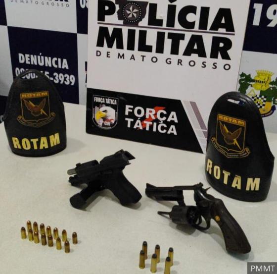 Policiais militares do Batalhão de Rondas Ostensivas Tático Móvel (Rotam) prenderam dois homens, de 22 e 29 anos, por porte ilegal de arma de fogo, na madrugada desta segunda-feira (29.01), em Sorriso. Na ação, duas armas de fogo foram apreendidas com os suspeitos.