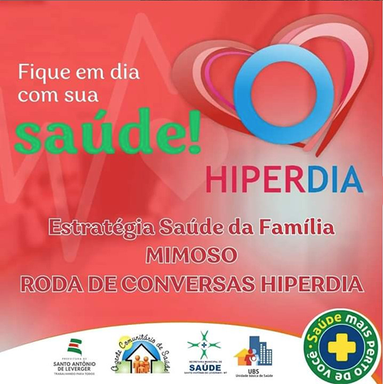 👉 – O programa hiperdia, da Estratégia de Saúde da Família (ESF), é desenvolvido em Santo Antônio de Leverger, com o objetivo de captar informações para o cadastro e o acompanhamento de pacientes hipertensos e diabéticos.