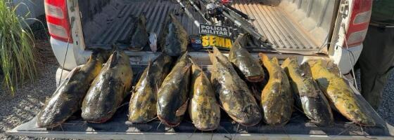 Em fiscalização as margens do Rio Cuiabazinho, em frente a Pousada Reserva Yaporã, foram apreendidos 12 exemplares de pescado da espécie Jaú, totalizando 38 quilos de peixe que a pesca e transporte é proibido pela legislação estadual. Uma pessoa foi multada e conduzida para delegacia de Polícia em Nobres. Também foram apreendidos 7 varas de pescar, 7 molinete e 1 barco de alumínio 5 metros.