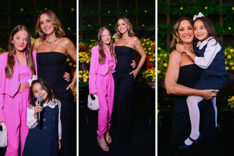 Ticiane recebeu ainda o carinho das filhas, Manu e Rafa Justus. As três chegaram a posar juntas para as fotos.